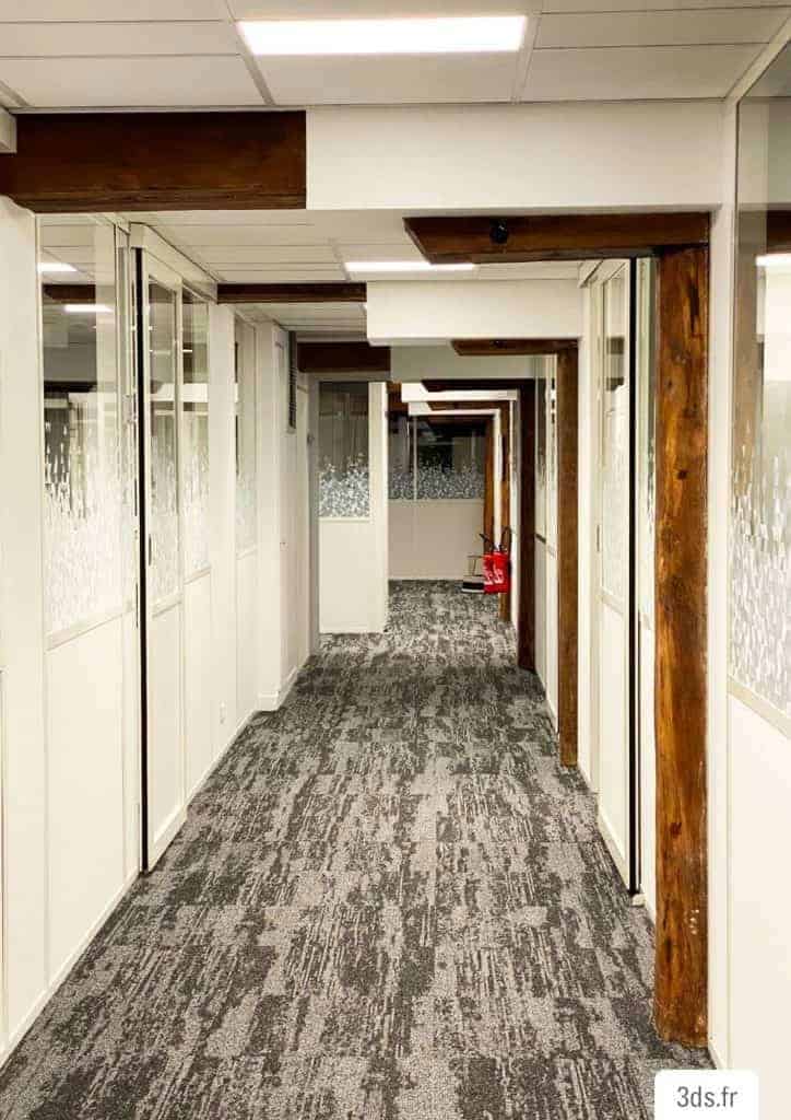 Dans un second temps, afin de conserver la luminosité présente dans ses bureaux, tout en permettant une certaine confidentialité dans les espaces communs de travail, de nombreuses vitrophanies décoratives – aux motifs sur mesure – ont été déployées par nos équipes certifiées “transformateurs et applicateurs recommandés 3M”.